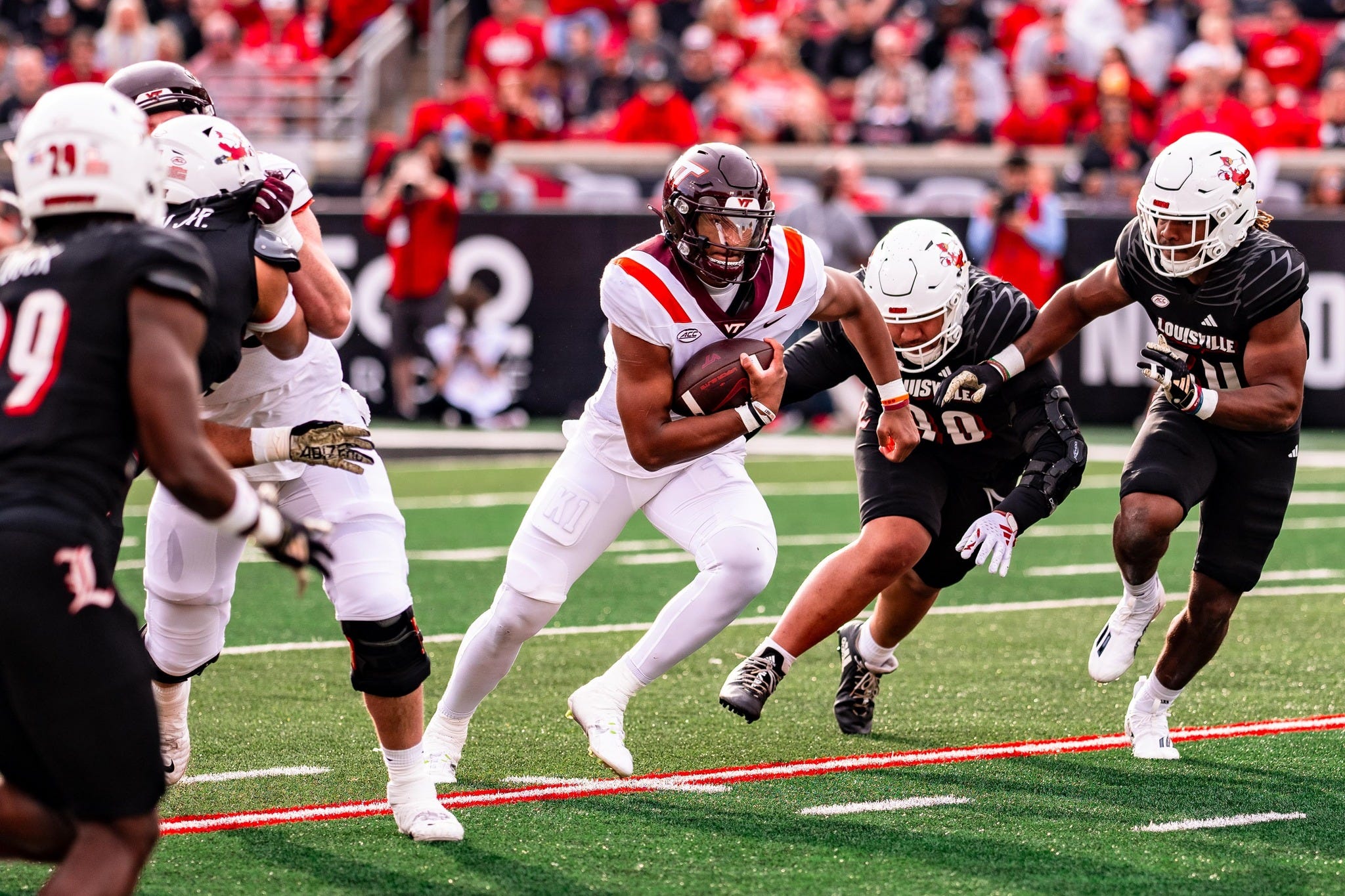 Before diving into Virginia Tech’s maddening performance, let’s give Louisville their flowers. The No. 13 Cardinals dominated the Hokies in every facet of the game. Louisville bottled up Tech to the tune of 140 total yards on 51 plays. Virginia Tech converted just two of their 11 third down attempts and went three-and-out five different times.
